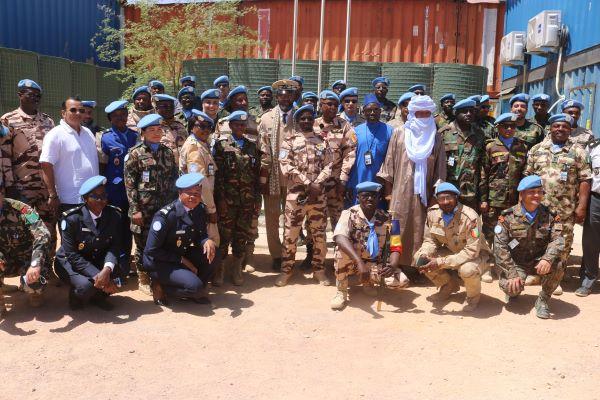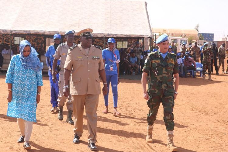 La cérémonie a été présidée par le chef par intérim du bureau régional, Djibril NDIME, entouré du commandant régional de la Force, le général Moussa GOURBAL, du commandant régional de la Police des Nations unies (UNPOL), le Colonel Hatem SMACH, du Gouverneur de la Région de Kidal, le Colonel Fodé Malick SISSOKO, et du président de l'Autorité intérimaire de Kidal, Hassan Ag FAGAGA. Dans son discours, le Gouverneur a salué « le courage, le dévouement et l'abnégation » des Casques bleus déployés à Kidal et qui travaillent « sans relâche pour protéger les civils, faciliter les processus de paix et contribuer au relèvement des communautés touchées par les conflits ». Le chef de bureau, lui, a adressé ses vives félicitations à la cinquantaine de Casques bleus décorés à cette occasion ainsi qu'à tous « ces hommes et femmes qui, au péril de leur vie, œuvrent pour la paix au Mali et dans le monde ».
