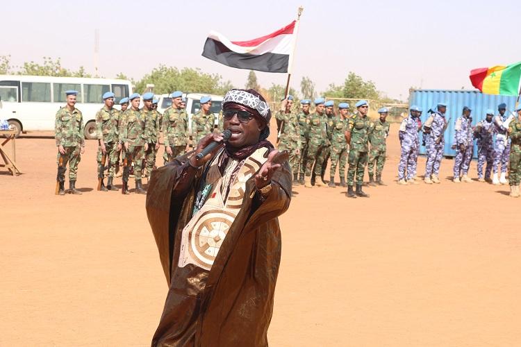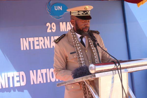 Le Gouverneur Moussa TRAORE a rendu hommage aux Casques bleus déployés dans la région et qui au quotidien remplissent leurs missions au service de la population malgré les conditions difficiles. Faisant référence à son expérience, il a souligné « qu'on est tous Casque bleu quelque part. » Le Général Moussa TRAORE a une nouvelle fois salué la bonne collaboration entre les autorités régionales et les Casques bleus. La cheffe du bureau de la MINUSMA de Gao, le Gouverneur, le Commandant adjoint de la Force et le Commandant régional de la police des Nations Unies (UNPOL) ont déposé une gerbe de fleurs au monument aux morts pour saluer le sacrifice des soldats tombés au service de la paix au Mali. La cérémonie s'est achevée par une prestation artistique du chanteur Sabane Boubacar TOURE.