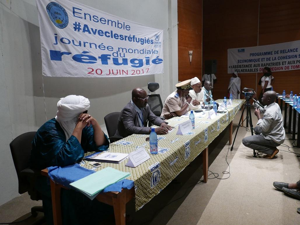 A Tombouctou, la cérémonie a réuni plus 200 personnes, parmi lesquels des réfugiés de retour. A l’échelle du Mali et de la région de Tombouctou, les réfugiés maliens, dans les trois pays frontaliers, représentent 0,86% de la population malienne. Plus de 50% de ces réfugiés maliens sont originaires de la région de Tombouctou. « La patience et la tolérance, qui sont nos valeurs traditionnelles, doivent soutenir les efforts de nos partenaires pour les encourager à faire le plaidoyer et de continuer à relever avec nous les défis, nombreux qui pèsent sur nos populations vulnérables, » a déclaré Kantara Diawara, conseiller aux Affaires Juridiques et Administratives, représentant du gouverneur de Tombouctou. L’évènement a été marquée par une conférence placée sous le thème de ladite journée : « Ensemble avec les refugies ».