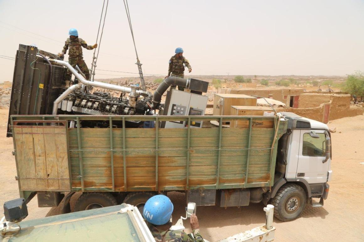 « Le groupe électrogène qui alimente la ville de Kidal en électricité est tombé en panne depuis, le 10 juin 2018 », explique M. Mohamed Ag Mimi, président de la Commission Energie de la ville Kidal. « Malgré la réception de nouveaux groupes, la commune ne dispose pas de moyens pour décharger ce matériel, nous avons donc sollicité l’appui de la MINUSMA. » Celle-ci a répondu favorablement à cette demande. « Nous avons pris toutes les dispositions, en accord avec le Leadership de la Mission, pour décharger les groupes électrogènes, ainsi que les différents matériels, » a indiqué M. Djibril Ndime, le chef de bureau par intérim de la MINUSMA à Kidal. C’est ainsi que, la Compagnie du génie du Contingent du Bengladesh a été envoyée sur le site de la centrale électrique, exécuter les travaux.