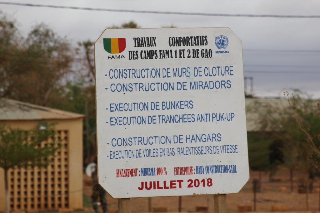 Le Bureau régional de la MINUSMA à Gao a lancé officiellement le 08 août dernier, un projet de réhabilitation des camps militaires de la région. Le projet vise à améliorer la sécurité des camps I et II des FAMas en général et des familles qui y logent en particulier. Financé à travers le fonds fiduciaire des Nations Unies en appui à la paix et à la sécurité au Mali, le projet coûtera environ 157 millions de FCFA sur une durée d’exécution de six mois. Il bénéficie de l’appui technique de la Mission de formation de l’Union Européenne au Mali (EUTM) et du Service de l'action antimines des Nations Unies (UNMAS).