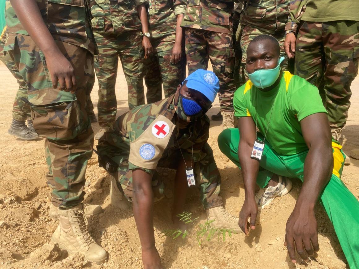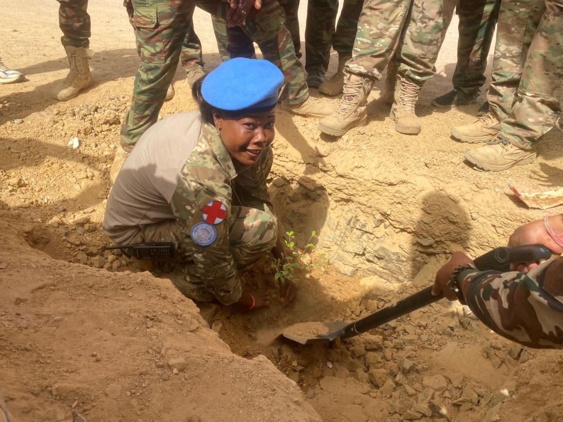 La responsable de l’unité environnement, Sifa Noella a ensuite guidé le personnel de la Force, de la Police des Nations Unies (UNPOL) ainsi que les personnels civils, pour l’opération de reboisement. Toute nationalité confondue, toutes et tous ont planté des arbres dans le camp afin de contribuer à la lutte contre la désertification dans la région.
