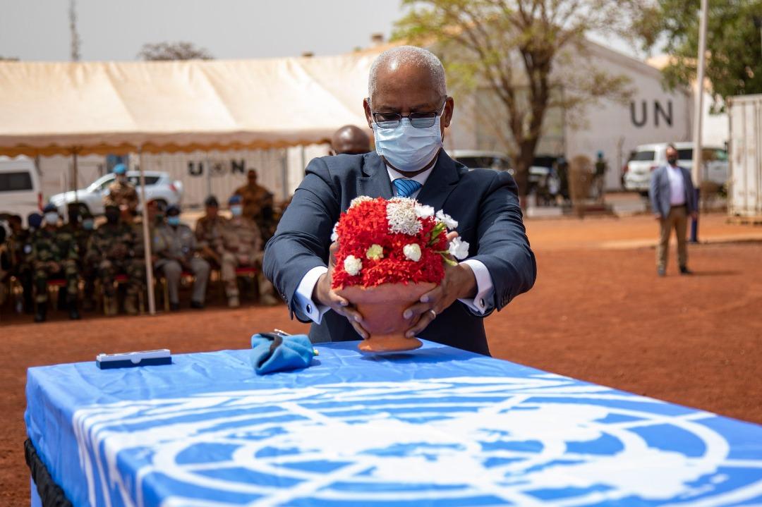 « Je voudrais réitérer nos vœux de plein rétablissement aux quatre Casques bleus qui ont été blessés lors de cette attaque, ainsi qu'aux trois casques bleus blessés lors de l'attaque qui a tué le capitaine ABDELGAWAD, » a déclaré le Chef de la MINUSMA, El-Ghassim WANE, après avoir présenté ses condoléances et celles des Nations Unies aux autorités et au peuple égyptien ainsi qu’à la famille du disparu. À la suite du Général NDIAYE, lui aussi n’a pas manqué de rappeler qu’il y a une semaine, un autre hommage a été rendu à deux autres Casques bleus égyptiens, tombés au champ d’honneur pour la paix au Mali. « Depuis le début de cette année, les Casques bleus de la MINUSMA ont subi de nombreuses attaques. Nous avons perdu trois hommes et onze autres ont été blessés, a-t-il aussi souligné avant de rappeler qu’« en 2021, nous avons perdu 19 casques bleus et 150 autres ont été blessés ». « Je voudrais dire ici que chaque jour, aujourd’hui comme hier, hier comme avant-hier, depuis le déploiement de la Mission, nos personnels en uniforme continuent à remplir les obligations qui sont les leurs avec dévouement et courage. Au moment où je vous parle, des centaines, des milliers entre eux sont en train de mener des patrouilles, des opérations de protection des civils et facilitent d’autres activités de la Mission à différents endroits du Mali - à Tessalit, à Aguelhok, à Kidal, dans la région de Kidal, mais également à Tombouctou, Tombouctou ville, à Goundam, ou à Ber, où j’étais il y a trois semaines » a ajouté El-Ghassim WANE.