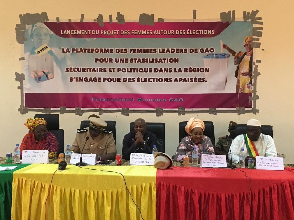 Ce projet a été lancé en présence du Gouverneur de la région de Gao, du Chef du bureau régional de la MINUSMA, des responsables des organisations de femmes de la société civile et de plusieurs autres acteurs dont 300 femmes venues de différentes localités de la région. La sensibilisation des femmes sur leurs potentialités dans le processus électoral, l’importance de la mobilisation des femmes le jour du vote pour augmenter considérablement le taux de participation, partager les projets de société des différents candidats pour les pousser à voter, sont entre autres activités prévues par la plateforme des femmes leaders de Gao pour une stabilisation sécuritaire et politique dans la région de Gao. « Chères sœurs et filles, nous savons de quoi vous êtes capables quand vous le voulez bien. Au fil du temps, vous avez fait montre de votre engagement et de votre responsabilité pour la réussite des élections que notre pays a eu à organiser. Mobilisons-nous pour jouir de notre droit au vote en retirant nos cartes et en allant voter. C’est à ce prix que nous exprimerons mieux notre citoyenneté, » a lancé Haidara Aissata Sangho, Directrice régionale de la Promotion de la Femme de l’Enfant et de la Famille.