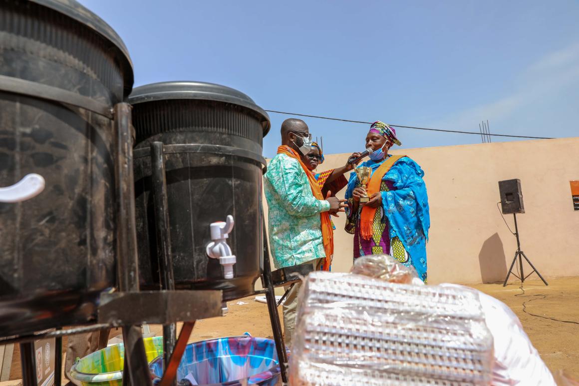 Au cours de la cérémonie, Le directeur de la Division des droits de l’homme et de la protection de la MINUSMA, Guillaume NGUEFA, a remis symboliquement un trophée à chaque représentant et représentante afin de les remercier pour leur rôle de « champions et championnes de la lutte contre les violences sexuelles liées au conflit ». La cérémonie a aussi été marquée par la remise de matériel promotionnel ainsi que de kits sanitaires afin que les OSC puissent continuer à soutenir les survivantes, en respectant les consignes sanitaires.