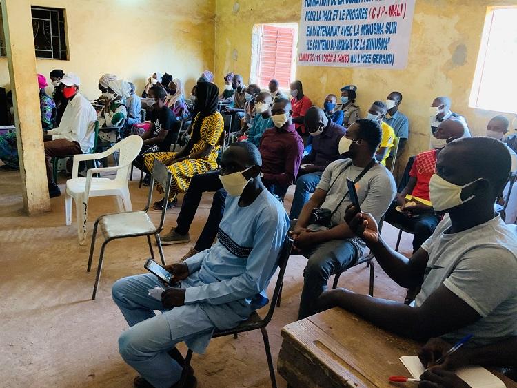 Au lycée Gerard de Bacodjikoroni, dans la commune V le 30 novembre, devant une assistance composée à majorité d’étudiants et d’élèves, Abdoul Salam TOURE de l’Unité de sensibilisation communautaire de la MINUSMA, avant de s’appesantir sur la résolution 2531 (2020) du Conseil de Sécurité des Nations Unies, a expliqué le processus de déploiement d’une opération de maintien de la paix. Une approche qui doit permettre aux membres de la Coalition des Jeunes pour la Paix et le Progrès au Mali (CJP-Mali) partenaire de la séance de sensibilisation de ce jour, de mieux comprendre le contexte de déploiement de la MINUSMA.