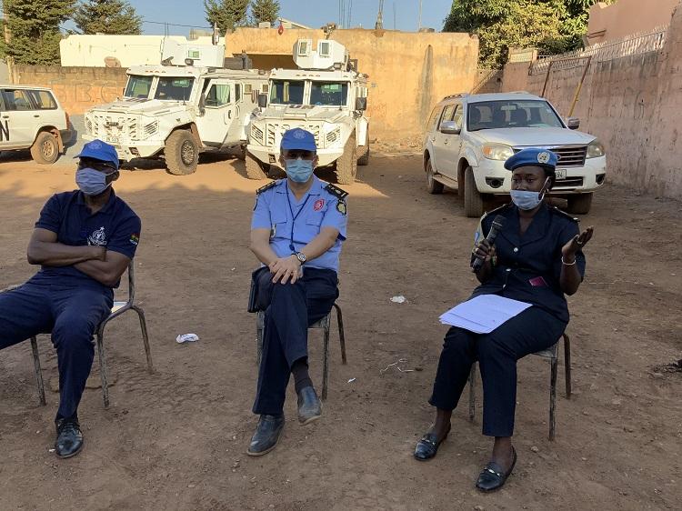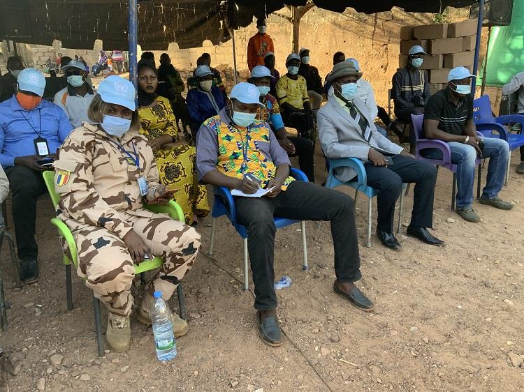 La Commandante Djarmitta Damaris BAGAOU a, de son côté, édifié les différents publics sur le rôle et le travail de la composante Force de la MINUSMA. Elle a longuement insisté sur le fait que les missions des différents contingents déployés au Mali sont non exécutives, notamment en matière de lutte contre le terrorisme. Elles relèvent plutôt des Forces Armées maliennes et des Forces internationales comme Barkhane ou encore la Force du G5 Sahel à laquelle la MINUSMA apporte un soutien logistique important a-t-elle souligné. Le rôle de la composante police des Nations Unies UNPOL a aussi été expliqué aux populations par l’Adjudante Ndeye Arame THIAM. Elle a évoqué le soutien d’UNPOL dans la mise en œuvre de l’Accord pour la paix et la Réconciliation au Mali, la protection des civils, la protection des droits de l’homme mais aussi le soutien aux Forces de Sécurité du Mali dans leurs actions sur le plan sécuritaire.