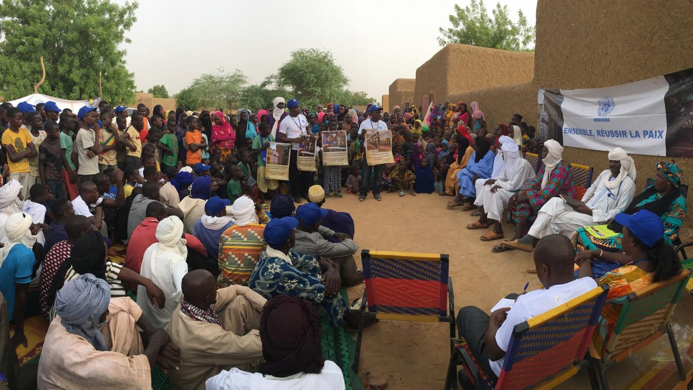 Le vendredi 7 juillet 2017, plus de 380 résidents du village Zindiga, dans la commune rurale de Soni Aliber, ont été informés sur le travail de la MINUSMA et de ses différentes composantes. Au cours d’une réunion publique, des représentants des sections Réforme du Secteur de la Sécurité et du Désarmement Démobilisation et Réinsertion (RSS/DDR), de la division des Affaires civiles et de l’Equipe Conduite et Discipline, ont échangé avec les villageois et recueilli leurs points de vue sur les questions brûlantes de l’heure, notamment celle de la réduction de la violence communautaire. Un exercice régulièrement organisée par le Bureau de l’Information Publique de la MINUSMA.