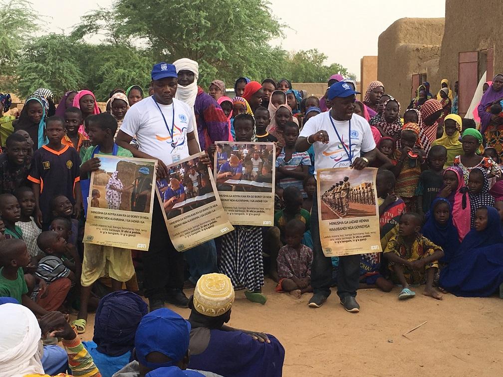 Les représentants de la division des Affaires civiles, Alhader Ag Agaly, et celui de l’Equipe Conduite et Discipline, Léonard Ndikiminwe ont, tour à tour, informé la population de Zindiga du travail de leurs équipes respectives. Les affiches de sensibilisation en langue sonrhaï pour faire appliquer pleinement la politique de la tolérance zéro à l’égard de l’exploitation et des abus sexuels par des forces de maintien de la paix ont été remises au Chef du village.