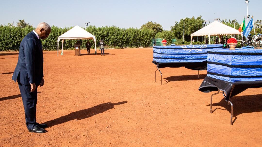 Pour le chef de la MINUSMA, El Ghassim WANE, la mort tragique des deux casques bleus nigérians témoigne de la complexité du terrain sur lequel évoluent les soldats de la paix au Mali. « Il n’y a pas de doute, la situation est difficile. La MINUSMA est la mission qui hélas compte le plus grand nombre de personnels en uniforme, militaires et policiers, tués. C’est une mission dangereuse. La cérémonie d’aujourd’hui est un rappel de la complexité et de la dangerosité de la situation ; mais c’est aussi un appel pour nous à faire davantage, à continuer à persévérer dans nos efforts pour que les sacrifices qui ont été faits par nos camarades ne soient pas vains », a-t-il indiqué.