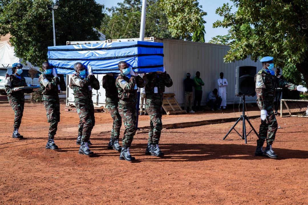 La MINUSMA a rendu un dernier hommage à trois de ses Casques bleus tombés le 16 décembre 2022. Il s’agit de deux Nigérians victimes d’une attaque contre leur patrouille à Tombouctou et un Nigérien décédé des suites d’une maladie à Ansongo. La cérémonie d’adieu a eu lieu vendredi au siège de la mission, en présence du Représentant spécial du Secrétaire général de l’ONU, l’ambassadeur de la République fédérale du Nigeria au Mali ainsi que des représentants du gouvernement malien.