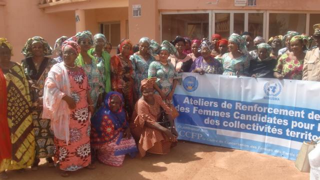 Depuis le 7 mars 2017, l’Unité Genre de la MINUSMA a démarré une série d’ateliers de renforcement de capacités à l’endroit de potentielles candidates aux élections des collectivités territoriales. En effet, des ateliers se sont tenus à Koulikoro du 7 au 9 mars 2017, Ségou du 9 au 11 mars 2017, Sikasso du 13 au 15 mars 2017.