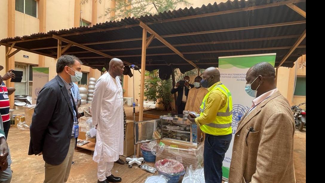 La MINUSMA a procédé à la remise officielle d’un lot d’équipements médico-techniques à la Direction Nationale de l’Administration Pénitentiaire et de l’Education Surveillée. Ce lot se compose de stérilisateurs, de stérilisateurs électriques, de boîtes de petite chirurgie, d’oxymètre de pouls, de haricot médical Inox, de plateaux médicaux de plusieurs formats, de potences médicales, de bassin de lit et de bassin de nettoyage.