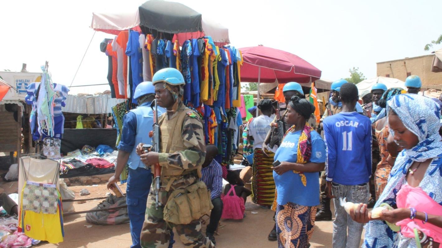 Après une visite similaire à la Brigade de gendarmerie de la localité, les Casques bleus se sont rendus au Commissariat de police pour entamer la dernière étape de la patrouille, à savoir la phase pédestre au marché, où se tient ladite foire bihebdomadaire. En effet l’équipe a parcouru le marché sous le regard, visiblement satisfait, des forains, échangeant de temps en temps avec certains commerçants pour leur expliquer l’objet de leur patrouille.
