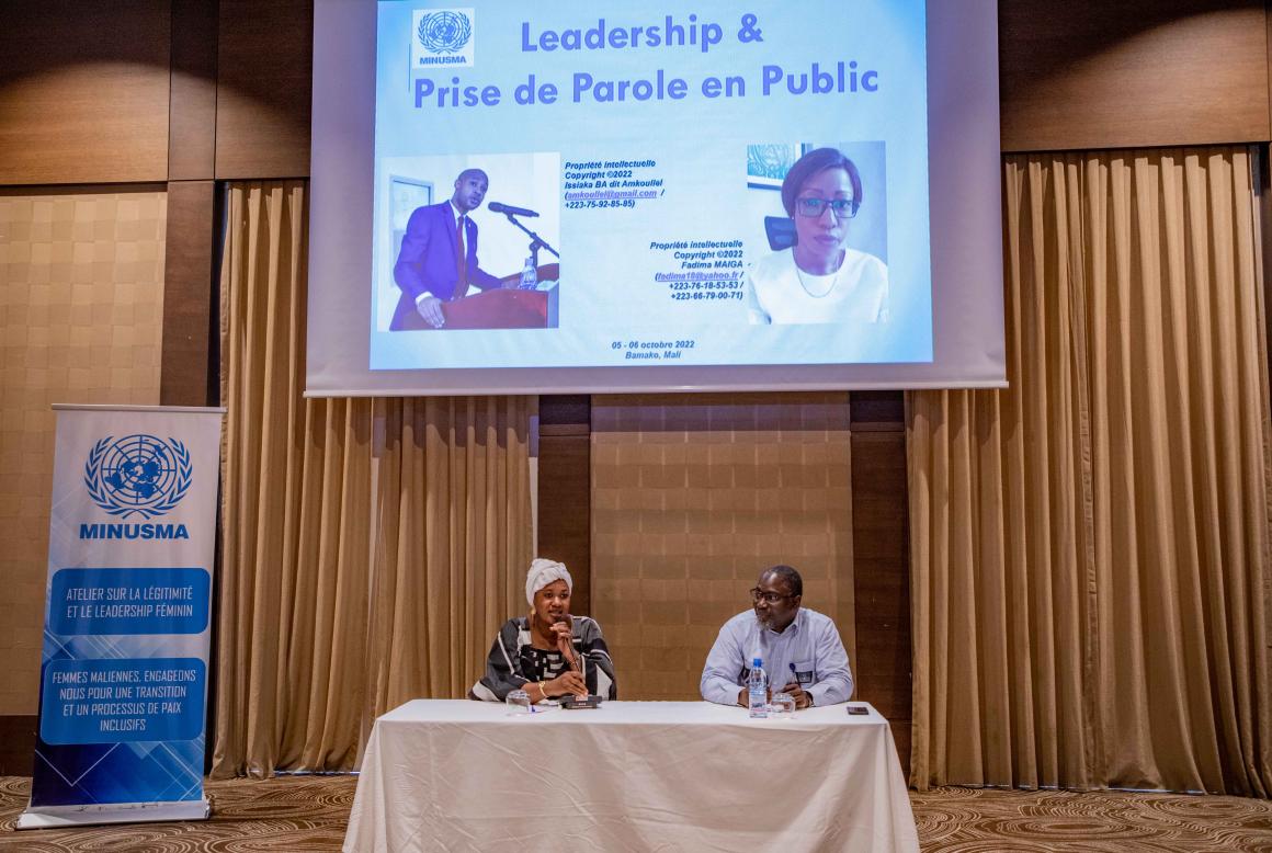 Durant deux jours, au cours de séances de partage d’expériences, les savoirs et techniques pouvant améliorer la prise de parole des femmes en public ont été passés en revue. Les intervenants ont ainsi montré de façon détaillée comment la voix et le corps contribuent à accroitre ou non l’influence de celle qui s’exprime, en la plaçant ou non, dans le bon rôle. Plus encore, ces présentations ont abordé la détection des comportements féminins non verbaux (et en particulier vocaux) qui portent préjudice et comment ces derniers enferment les femmes dans des rôles qui les empêchent de s’affirmer. Comprendre les origines de ces comportements et acquérir des outils pour reconditionner le rapport des femmes à la prise de parole et au leadership, l’appropriation des règles de la prise de parole en public ou encore, la formulation d’une intention sous-jacente au message, qui lui donnera plus de force ont également été abordés. Des outils simples et concrets pour maîtriser le langage non verbal (corps et voix), afin de mieux gérer l’image renvoyée, mais aussi captiver l’auditoire et l’influencer ont également été exposé au bénéfice des participant(e)s. Pour Samantha BUONVINO, Cheffe de l’unité genre de la MINUSMA : « cet atelier est une illustration des nombreuses actions par lesquelles la MINUSMA contribue au renforcement du rôle des femmes du Mali dans les processus de paix et de transition. Les femmes et les filles étant des actrices incontournables pour surmonter les plus grands défis auxquels elles sont confrontées, les exclure signifie faire échouer un processus de paix durable et représentatif. Pour Mme BUONVINO, les femmes autant que les hommes, doivent être entendues, valorisées et appréciées dans l'ensemble de la société, pour que leurs voix puissent refléter entièrement et fidèlement leurs perspectives contribuant à une vision de paix inclusive, représentative et durable ».