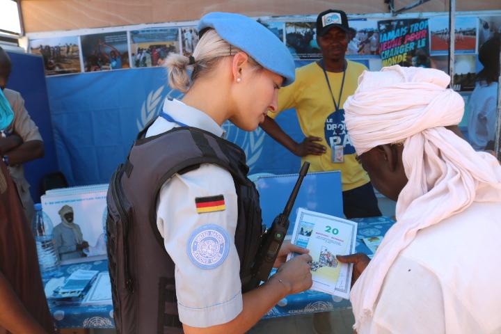 « Merci pour votre accompagnement et engagement dans le processus de paix », a déclaré le premier ministre, Dr. Boubou Cissé, qui a visité le stand de la MINUSMA érigé sur le terrain Bleni de Gangal. Il s’est vu attribuer une documentation de la Mission des Nations Unies au Mali.