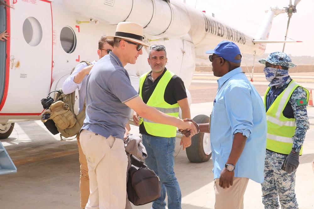 L’ambassadeur d’Allemagne a été accueilli par le chef de bureau par intérim de la MINUSMA à Kidal Djibril Ndime et le commandant du secteur Nord, le Général Hamed Nassour Soye. Dietrich Pohl s’est rendu aussitôt sur le chantier de construction de la nouvelle piste d’atterrissage qui bénéficie d’une importante contribution financière de son pays. Sur place, il a été briefé par l’ingénieur chargé de la construction de l’ouvrage sur les différentes étapes de l’exécution des travaux.