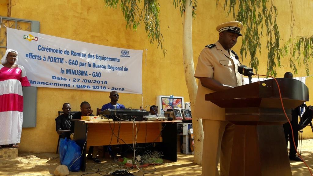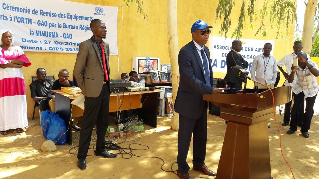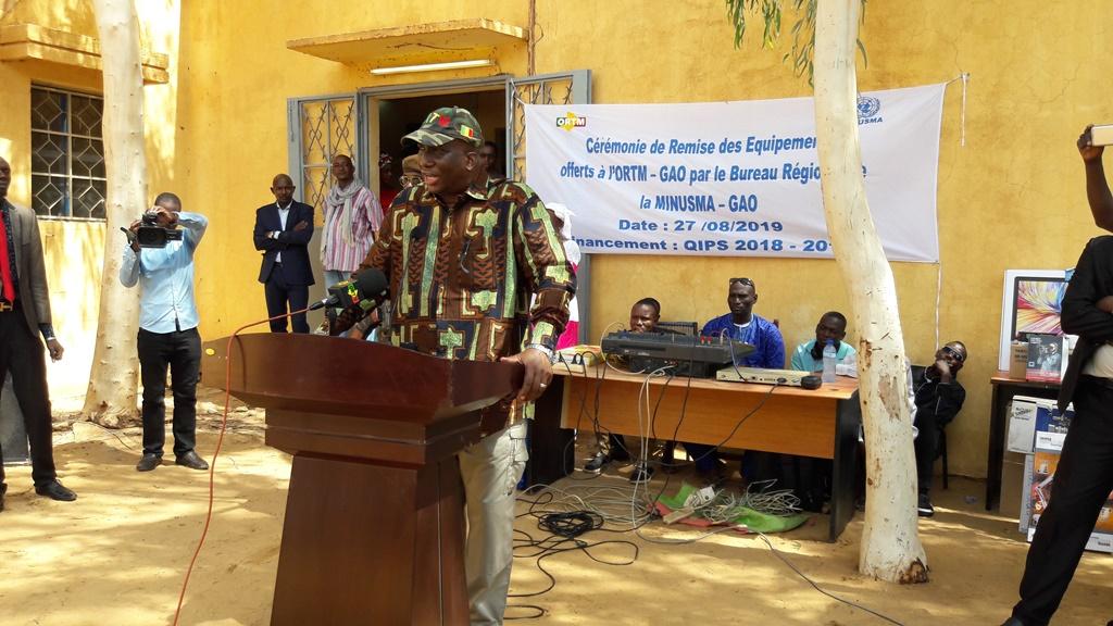 A cet égard, le Chef du bureau régional de la MINUSMA, M. Oumar Ba, a rappelé « qu’une plume peut être plus dangereuse qu’un kalashnikov, comme elle peut être un puissant instrument de promotion de la paix. Par ce projet, l’ORTM-Gao pourra mieux accompagner le processus de paix, par le biais d’une communication professionnelle et responsable. Je compte sur la responsabilité, le professionnalisme, l’attachement à l’éthique et l’engagement continu au service du Mali et des populations maliennes que nos partenaires sauront poursuivre. Faites-en sorte que ce projet soit un instrument au bénéfice durable pour l’ensemble des Maliens qui vous suivent ».