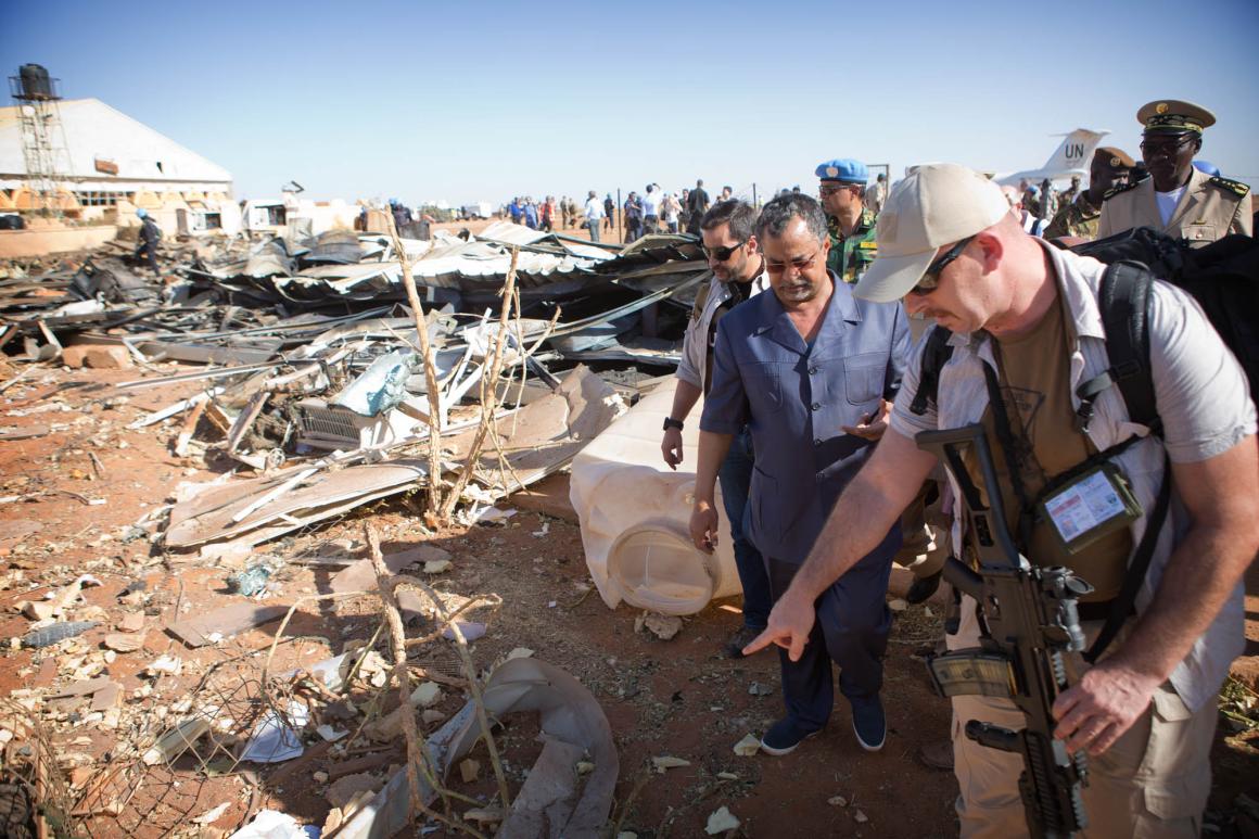 Après avoir passé les troupes en revue, M. Annadif et toute sa délégation ont pu visiter l’aéroport et ainsi, se rendre compte de l’ampleur des dégâts causés par cette attaque. « la MINUSMA va poursuivre sa mission et les réparations matérielles seront faites » a déclaré Monsieur Annadif, avant d’adresser ce message de réconfort au personnel de l’ONU sur place : « pour le personnel de la MINUSMA qui travaille dans une situation difficile, je voudrais que son moral ne lâche point. Je l’encourage à se dire qu’il a choisi un idéal, il a choisi de servir aux Nations Unies qui sont un ensemble de valeurs et de concepts qui méritent certains sacrifices. C’est ce qu’il est en train de faire ici au Mali ».