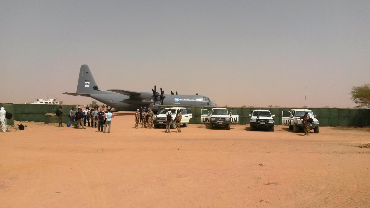 C’est à 11h00 que l’avion militaire du contingent danois qui transporte le chef d’État-major de la Force de la MINUSMA s’est posé à Kidal. Le Général de Brigade Hervé Gomart, à la tête d’une délégation restreinte, prend aussitôt le chemin du camp de la MINUSMA où l’attendent les centaines de militaires bangladais, népalais et cambodgiens qui doivent être décorés ce jour. Outre le cérémonial, une visite aux Casques bleus guinéens et tchadiens pour leur témoigner du soutien de l’État-major de la Force est également au programme.