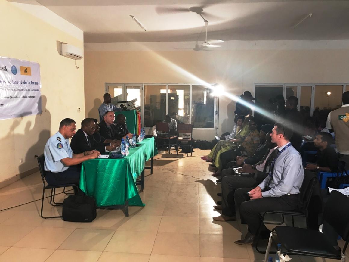 Pour sa part, le Représentant d’EUCAP-SAHEL a mis l’accent sur l’importance de l’amélioration des relations entre la police et les populations civiles à travers un meilleur rapport avec les médias. Il a en outre évoqué la nécessité pour les médias de jouer pleinement leur rôle en tant que pouvoir de contrôle de la bonne gouvernance. Il a terminé son propos en informant l’assistance sur le rôle d’EUCAP SAHEL dans le renforcement des capacités des forces de sécurité intérieure, dans des domaines décisifs concourant à la garantie de la liberté de la presse, notamment les formations en déontologie et en droits de l’homme.