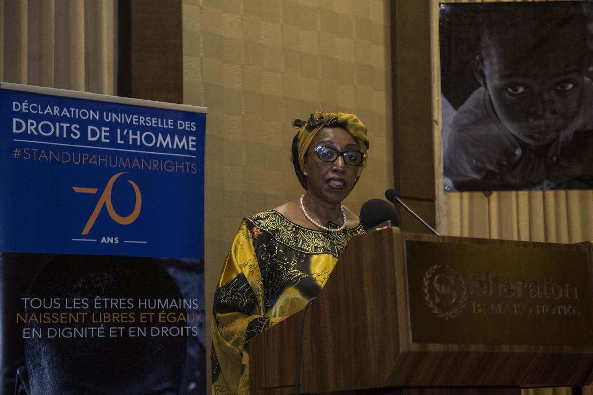 La Représentante Spéciale Adjointe du Secrétaire général des Nations Unies, Mme Mbaranga Gasarabwe, a quant à elle salué les avancées en matière de droits de l’homme, notamment sur le plan institutionnel : « (…) le Mali démontre chaque jour son engagement pour la promotion et la protection des droits de l’homme ». Elle a cependant présenté des enjeux actuels relatifs à la mise en œuvre des idéaux contenus dans la Déclaration universelle des droits de l’homme notamment par la remise en cause de l’universalité et de la primauté des droits de l’Homme, l’impunité des violations graves des droits de l’homme, et le recul de la redevabilité. « (…) La pression sur les droits universels est en effet devenue une évidence, et notre attention doit être sans relâche. Contre ces menaces, les mécanismes et les lois sur les droits de l’homme doivent être défendus et promus en permanence. C’est notre responsabilité à tous. L’avancée pour le progrès humain a en effet toujours été une lutte ».