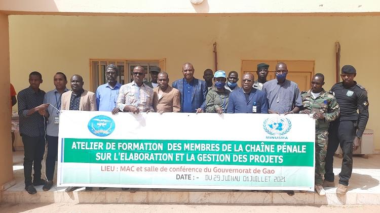 La section des Affaires judiciaires et pénitentiaires de la MINUSMA (SAJP) a organisé un atelier de renforcement de capacité des acteurs de la chaine pénale de Gao, sur le montage des projets et l’élaboration de budget. C’était du 29 au 1er juillet dernier au gouvernorat de Gao.