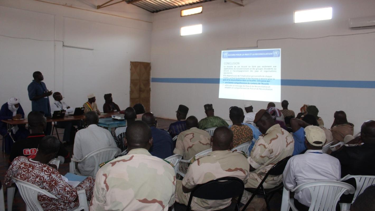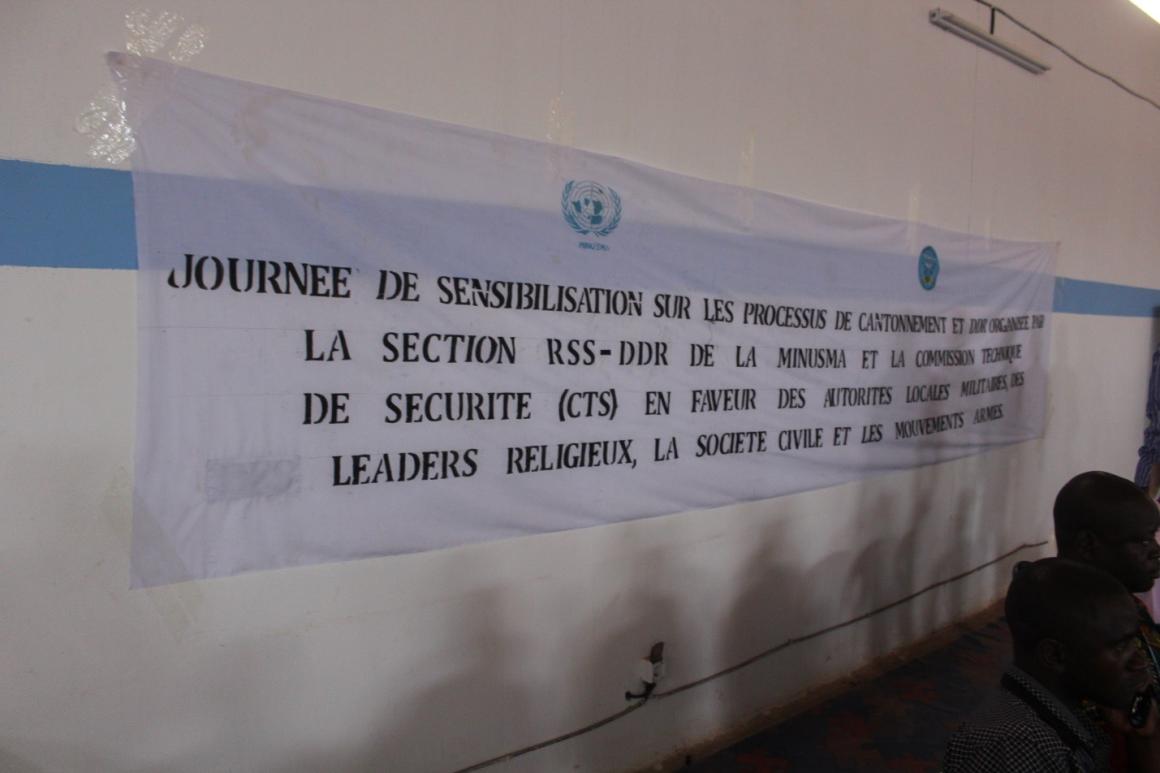 Par ailleurs il serait judicieux de rappeler que la tenue de cette journée de sensibilisation, appuyée par la MINUSMA fait suite à une recommandation de la CTS, au cours de sa réunion du 18 Mai 2016, qui a demandé aux membres de la CMA, de la Plateforme et au Gouvernement, aidé par la MINUSMA, d’organiser plusieurs séances de sensibilisation sur le DDR et le cantonnement à Mopti, Tombouctou, Gao et Kidal.