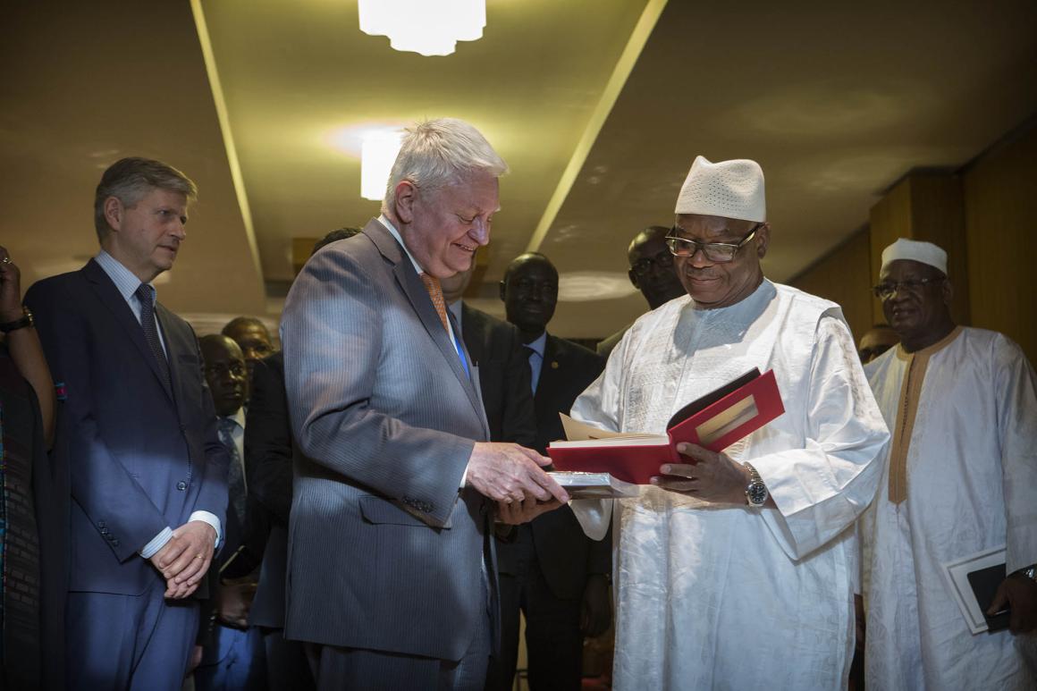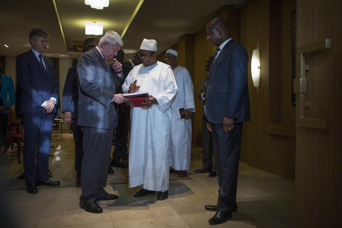 Le Président de la République du Mali, S.E.M Ibrahim Boubacar Keïta, a reçu aujourd’hui le Secrétaire général adjoint aux opérations de maintien de la paix, M. Hervé Ladsous, dans le cadre de sa visite de deux jours au Mali au terme de son service auprès de l’organisation des Nations Unies à la fin du mois.
