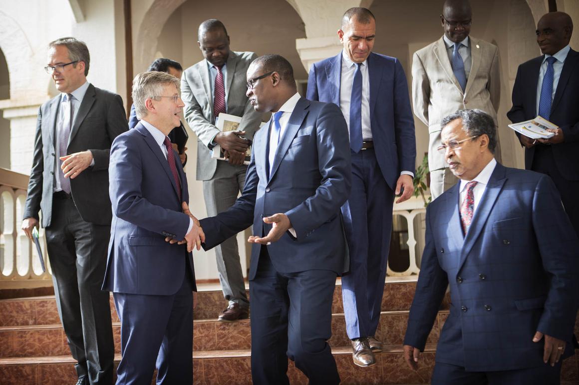 Dans le cadre de sa première visite de travail au Mali, le Chef du Département des opérations de maintien de la paix, M. Jean-Pierre Lacroix a rencontré aujourd’hui le Ministre des Affaires Etrangères de la Coopération Internationale et de l’Intégration Africaine, M. Abdoulaye Diop, ainsi que le Haut Représentant du Président de la République pour la mise en œuvre de l’Accord pour la Paix et la Réconciliation, M. Mahamadou Diagouraga. Accompagné du Représentant spécial du Secrétaire général au Mali, M. Mahamat Saleh Annadif, ces rencontres ont permis d’échanger sur le processus de paix et les défis à relever, notamment dans le domaine sécuritaire. M. Lacroix a tenu à remercier les responsables maliens pour leur coopération constructive et soutenue avec la MINUSMA, dans le cadre de l’accomplissement de son mandat.Dans le cadre de sa première visite de travail au Mali, le Chef du Département des opérations de maintien de la paix, M. Jean-Pierre Lacroix a rencontré aujourd’hui le Ministre des Affaires Etrangères de la Coopération Internationale et de l’Intégration Africaine, M. Abdoulaye Diop, ainsi que le Haut Représentant du Président de la République pour la mise en œuvre de l’Accord pour la Paix et la Réconciliation, M. Mahamadou Diagouraga. Accompagné du Représentant spécial du Secrétaire général au Mali, M. Mahamat Saleh Annadif, ces rencontres ont permis d’échanger sur le processus de paix et les défis à relever, notamment dans le domaine sécuritaire. M. Lacroix a tenu à remercier les responsables maliens pour leur coopération constructive et soutenue avec la MINUSMA, dans le cadre de l’accomplissement de son mandat.