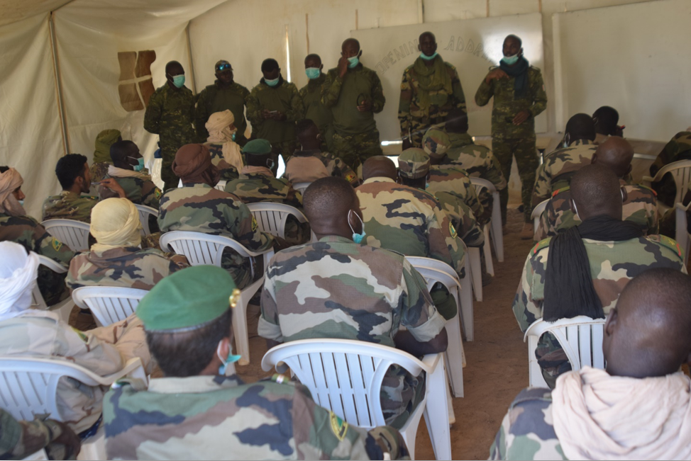 La cérémonie d’ouverture de cette session de formation a eu lieu le 10 novembre dernier au Camp de la MINUSMA à Tombouctou, en présence du Général de Brigade Wael SHAWKY, Commandant du Secteur Ouest, de ses collaborateurs et de la délégation malienne conduite par Colonel Boubacar Yanssary SANOGOH, Commandant la 5ème Zone de Défense de Tombouctou. Dès leur arrivée les 40 éléments de la 1ère Section de la 2ème Compagnie du BFAR ont été sensibilisés sur les mesures barrières contre la propagation de la COVID-19, par le Médecin-chef de l’Hôpital de Niveau 1 du Bataillon ivoirien. Ils se sont également vu remettre des kits de formation.