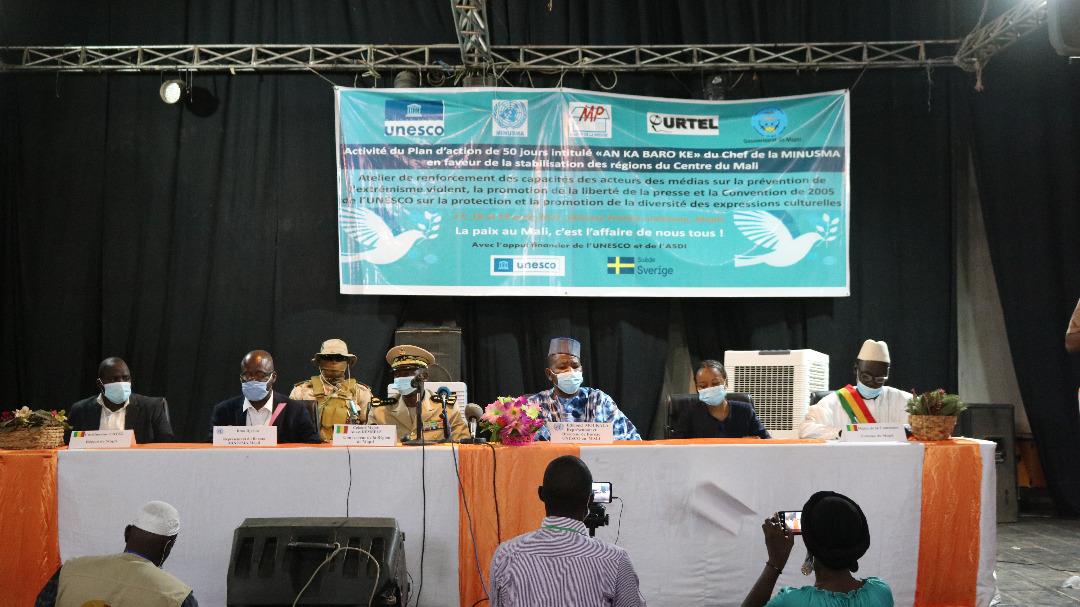 Les trois jours de travaux se sont déroulés en plénières et en travaux de groupe au tour de trois sessions à savoir, la prévention de l’extrémisme violent : état de lieu, enjeux, défis et stratégies, les acteurs des médias et la promotion de la liberté de presse, ainsi que la Convention de 2005 de l’UNESCO sur la protection et la promotion de la diversité des expressions culturelles. A l’issue des travaux, les participants ont formulé plusieurs recommandations parmi lesquelles la création d’un réseau d’acteurs de médias pour le partage et la mutualisation continus d'expériences, de leçons et de bonnes pratiques dans la lutte contre l’extrémisme violent dans les régions du centre du Mali, la promotion des politiques de formation qui aident à renforcer la résilience des médias dans la lutte contre l’extrémisme violent et à entretenir une culture de la paix. Les participants ont également demandé la multiplication d’ateliers à travers le pays pour une meilleure diffusion de la convention de 2005, la traduction de la convention de 2005 dans les langues nationales du Mali et la mise à la disposition des médias pour diffusion, et la récompense des meilleures émissions radiophoniques sur la promotion de la diversité culturelle.