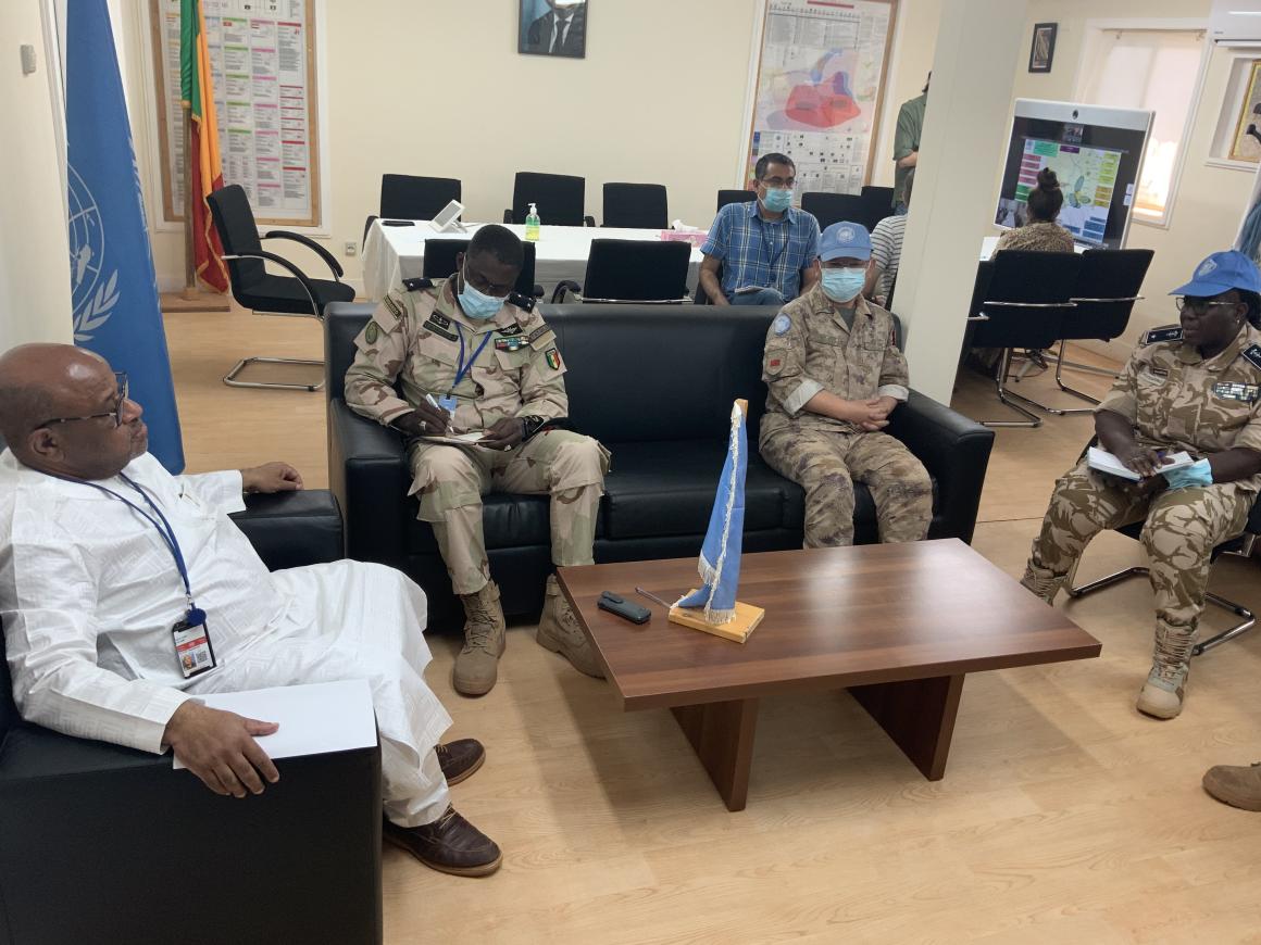 En compagnie du commandant du Secteur Est de la MINUSMA, le Colonel Jinsong ZHU et de la Commandante régionale d’UNPOL à Gao, la Générale Odile KANTYONO, le Chef du Bureau régional, a présenté au Général NIANG un aperçu exhaustif de la situation de la région de Gao. Mohamed El-Amine SOUEF a saisi l’occasion pour exprimer la reconnaissance de l’ensemble du bureau régional pour le travail, le professionnalisme et l’engagement des unités sénégalaises déployés à Gao pour le compte de la MINUSMA. « C’est une fierté pour nous ici et je salue le rôle important du Sénégal à travers le personnel militaire et civil pour sa contribution à la paix au Mali » a-t-il souligné. Le Commandant du secteur Est et la cheffe de UNPOL Gao ont à leur tour fait part de leur satisfaction pour le travail des Casques bleus sénégalais.