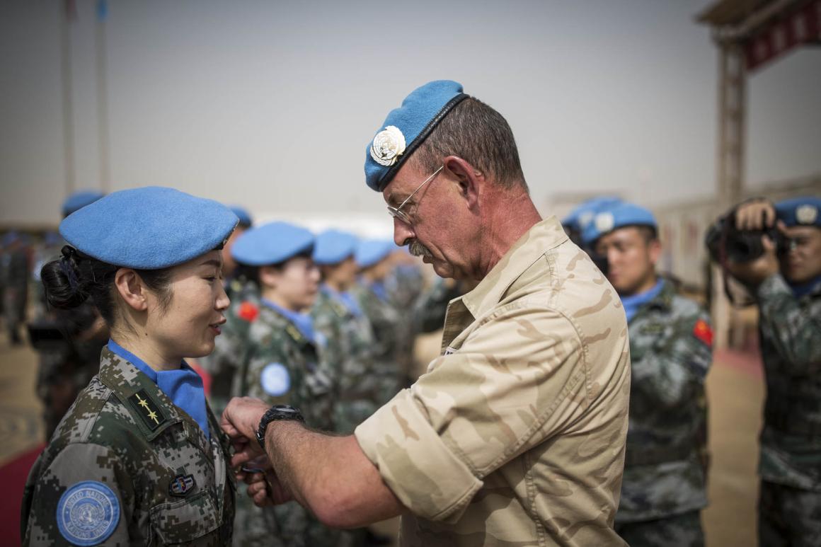 Le général de division et commandant de la Force de la MINUSMA, Jean-Paul Deconinck, a procédé, ce 20 février 2018 à Gao, à la décoration et à la remise de la médaille des Nations Unies aux 395 Casques bleus du 5ème contingent chinois, dont quatorze femmes qui sont arrivés au Mali en Mai 2017. Leur retour en Chine est prévu pour le mois de Mai 2018.