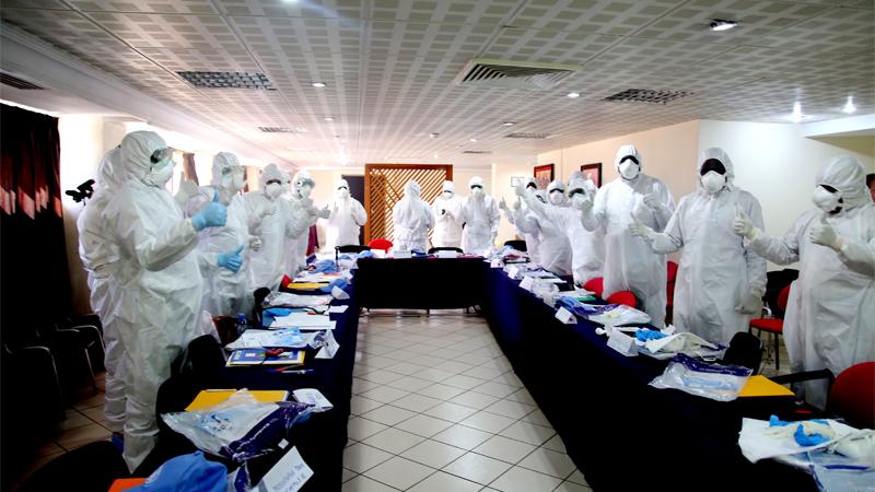 Entre autres enseignements à retenir de cet échange avec les spécialistes américains, les précautions et mesures pratiques que doivent prendre les personnels soignants au contact des malades afin d’éviter toute contamination. Ainsi, les médecins participants, ont pu prendre connaissance des techniques de retrait des masques et des gants, qui sont les phases les plus propices et les plus risquées de contamination.