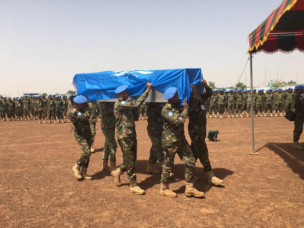 C’est suite au départ de leur dernier lieu d’affectation militaire que le Représentant spécial adjoint aux affaires politiques de la MINUSMA, M. Davidse Koen, s’est incliné, lors de la cérémonie à Bamako, devant les trois dépouilles mortelles pour saluer le courage, l’abnégation dont font preuve les Casques bleus qui ont quitté leurs familles à des milliers de kilomètres pour s’engager à la noble cause du maintien de la paix.