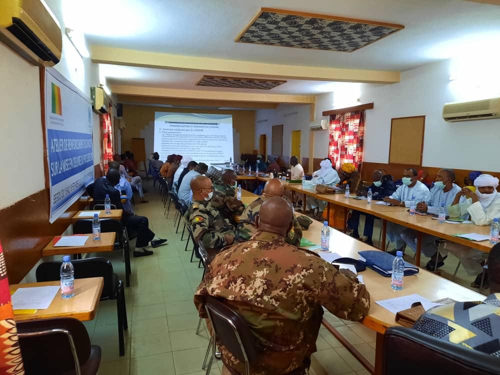 L’atelier a rassemblé 120 participants issus des deux Commissions, du Ministère de la Réconciliation nationale et de la Cohésion sociale, du Comité de Suivi de l’Accord (CSA), du Commissariat à la Réforme du Secteur de la Sécurité (C-RSS), de l’Etat-Major général des Armées, des Représentants des Mouvements signataires et ceux de l'inclusivité, le Secrétariat permanent du Haut Représentant du Président de la République pour la mise en œuvre de l’Accord pour la paix et la réconciliation, et de la MINUSMA, ainsi que des représentants de la MINUSMA par vidéo-conférence. En raison du nombre de participants et de la nécessité de respecter les mesures barrières contre la Covid-19, les travaux se sont déroulés en deux étapes : la première du 16 au 18 et la deuxième les 18 et 19 février derniers.