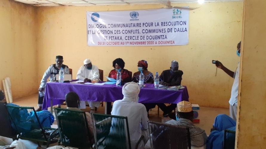 Ces ateliers s’inscrivent dans le cadre d’un projet intitulé « Soutien aux efforts de réconciliation du Gouvernement, à travers la mise en place et l’opérationnalisation des Comités Communaux de Réconciliation, et l’organisation des dialogues pour la médiation des conflits communautaires dans les régions du Nord et du Centre du Mali, » soutenu par les fonds programmatiques de la MINUSMA. Pendant deux jours, la salle de conférences de la mairie de Douentza a servi de cadre pour la tenue de ces échanges entre les autorités administratives et traditionnelles, les leaders communautaires et religieux, les représentants des associations de femmes ainsi que les conseils communaux et locaux des jeunes des communes de Dallah et Petaka.