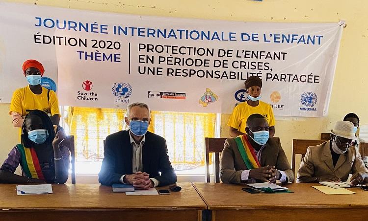 Plus loin, M. Christensen a mis en exergue l’importance de cette journée au cœur de laquelle s’inscrit le droit et la protection de l’enfant. Une question transversale prioritaire au sein de toutes les composantes des Missions de maintien paix onusiennes, y compris la MINUSMA. Par ailleurs, le thème au centre de ces célébrations fait écho à celui retenu au niveau national, portant sur la « Protection de l’Enfant en période de crises, une responsabilité partagée » et qui s’aligne avec la vision du Secrétaire général de l’ONU. À ce sujet, la MINUSMA et ses partenaires ont ainsi dédié cette journée à la promotion des droits des enfants exposés aux graves violations notamment, à travers la campagne de sensibilisation sur les six violations graves dont sont victimes les enfants en temps de conflit armé. Ces six violations comprennent le recrutement et l’utilisation d’enfants soldats, le meurtre et la mutilation d’enfants, le viol et les violences sexuelles sur les enfants, les attaques contre les écoles et les hôpitaux, ou encore les enlèvements d’enfant. « Au Mali, l’envergure de cette tragédie doit mobiliser notre attention et une réponse collective appropriée afin de protéger ces enfants forcés de commettre ou à être témoins ou victimes de violations et violences graves. Cette situation met en danger leur développement physique et affectif et constitue un frein à toute paix pérenne », a déploré le Chef de Bureau par intérim de la MINUSMA à Mopti.