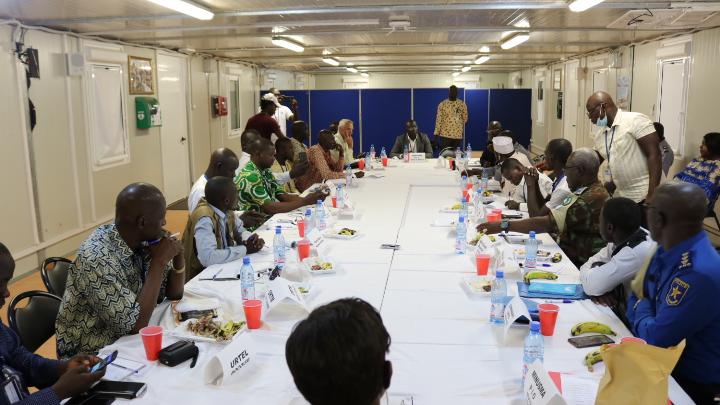La Cheffe du Bureau Régional de la Mission à Mopti, Fatou Dieng Thiam, le Commandant du Secteur Centre, le Général de brigade Sadou Maïga, le Commandant de la Police des Nations Unies (UNPOL), le Colonel Jean-Pierre Nyandu, les Chefs de la Section Stabilisation et Relèvement, Djekou Brou, et celui de la Division des Affaires civiles, Jens Kristensen, ont chacun donné des informations pertinentes sur le mandat de la mission et le travail des différentes sections.
