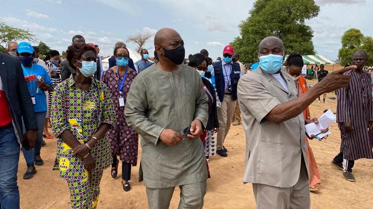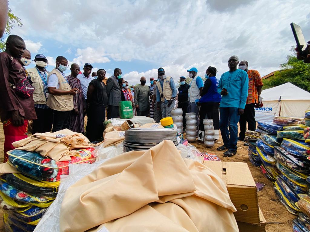 Une recommandation qui avait déjà trouvé écho auprès des agences humanitaires des Nations Unies et de leurs partenaires. En effet, visitant successivement les deux sites d’accueil de personnes déplacées internes (PDI) installées dans les environs de Sévaré, M. NOUDEHOU et les responsables du PAM, HCR, OIM, ONU-Femmes, FAO, FNUAP, UNICEF, ont procédé à la distribution de lots importants de tentes, kits alimentaires et de matériels d’hygiène à 216 ménages déplacés répartis sur les deux sites. Parmi ces personnes déplacées internes, 150 ménages sont venus de Bandiagara, le 28 juillet dernier, fuyant la menace de groupes armés non identifiés.