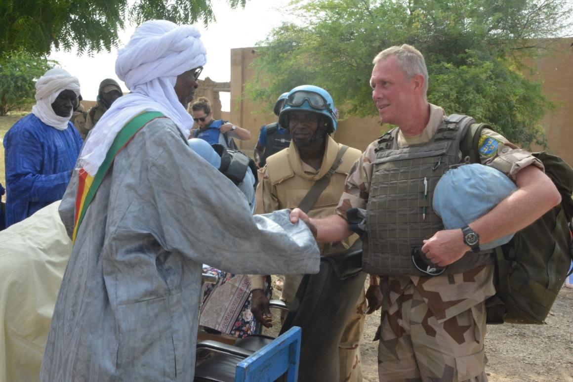 C’est Aglal qui a reçu en premier la visite des composantes militaires, civiles et UNPOL du secteur Ouest le 28 septembre. Conduite par le Commandant du Secteur Ouest, le Général de Brigade Stefan Andersson, la délégation a été accueillie par le Maire de la commune qui a exprimé le plaisir de ses concitoyens de recevoir la MINUSMA dans leur village. Le Général Andersson a rappelé l’engagement de la Mission à « soutenir le peuple malien ». Il a également sollicité la coopération des populations pour que revienne la paix. « La sécurité est une responsabilité commune. C’est la responsabilité de chacun d’entre vous », a-t-il conclu. La délégation a pu échanger avec les différentes couches sociales du village (Femmes, hommes, jeunes, personnes âgées et enfants). Des discussions fructueuses qui ont donné l’occasion aux membres de la délégation d’expliquer à nouveau le rôle et le mandat de la MINUSMA. La visite à Aglal s’est achevée avec un don de fournitures et de kits solaires aux populations.