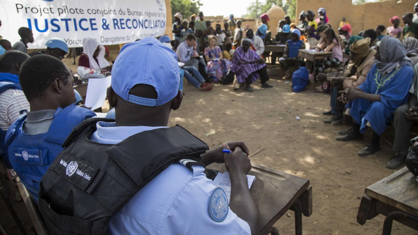 Les villageois se sont réveillés tôt et se sont rassemblés à l'ombre d'un arbre dans ce village malien de plus de 3 000 habitants, composé d'une poignée de maisons construites en banco, pour échanger avec des responsables des Nations Unies sur la promotion de la paix, de la justice et de la cohésion sociale.