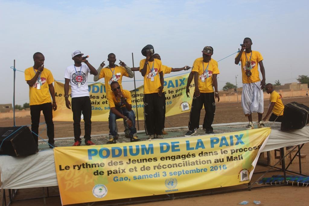 A travers son appui à des associations et regroupements d’associations tels que "Ensemble Nous Sommes Un peuple", le Conseil National de la Jeunesse du Mali et ses démembrements, la Mission de l’ONU au Mali continue à promouvoir la paix auprès des jeunes, en les impliquant d’avantage, via la culture et certains de ses modes d’expressions qu’ils apprécient le plus comme le Rap et le Slam.