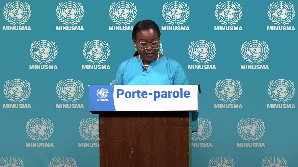 Bienvenue chers confrères, chères consœurs, bienvenue à toutes et à tous au point presse de la MINUSMA et merci pour votre participation. Avant tout propos, je tiens à me présenter car c’est notre toute première rencontre. Je suis Fatoumata Sinkoun Kaba, j’ai pris fonction il y a quelques semaines en tant Porte-parole de la MINUSMA. J’aurai le plaisir désormais de répondre à vos questions sur toutes les activités de la Mission. Bien évidemment, je compte sur votre accompagnement pour ce nouveau défi passionnant au Mali. Pour ma part, je vous assure de ma disponibilité entière à chaque fois que le besoin se fera sentir. Bonjour également à nos fidèles auditeurs et auditrices de Mikado FM qui nous suivent actuellement et que nous remercions pour cette fidélité.