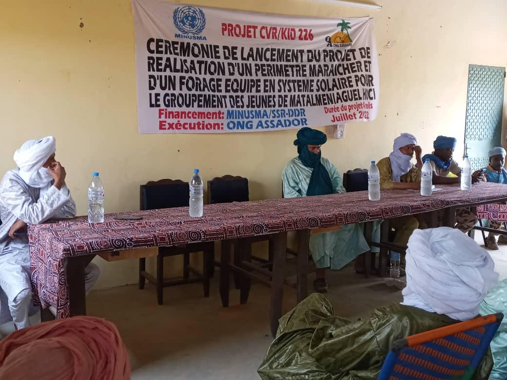 Dans l’extrême Nord du Mali, le village de Matalmen, à 40 km à l’est d’Aguelhok, 180 jeunes à risque se sont investis dans un projet de réduction de la violence communautaire. Cette initiative financée par la MINUSMA avec une enveloppe de 49 millions de francs CFA prévoit des activités maraichères et l’accès à l’eau pour renforcer la résilience des populations face aux multiples défis sociaux et sécuritaires.