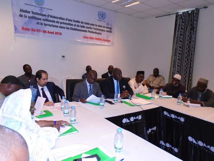Les 7 et 8 août 2019, la Section des Affaires judiciaires et pénitentiaires (SAJP) de la MINUSMA et la Direction Nationale de l’Administration pénitentiaire et de l’Education surveillée (DNAPES), ont conjointement organisé à Bamako, un atelier. Celui-ci visait à élaborer une feuille de route pour la mise en œuvre, dans le milieu pénitentiaire, de la politique nationale de prévention et de lutte contre l'extrémisme violent et son Plan d’action.