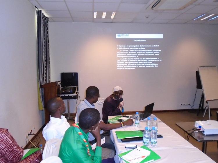 Des présentations ont été faites par des spécialistes de la MINUSMA et du bureau régional de l’ONUDC pour l’Afrique de l’Ouest à Dakar ainsi que des représentants du Ministère de la Justice et du Ministère des Affaires religieuses et du culte.