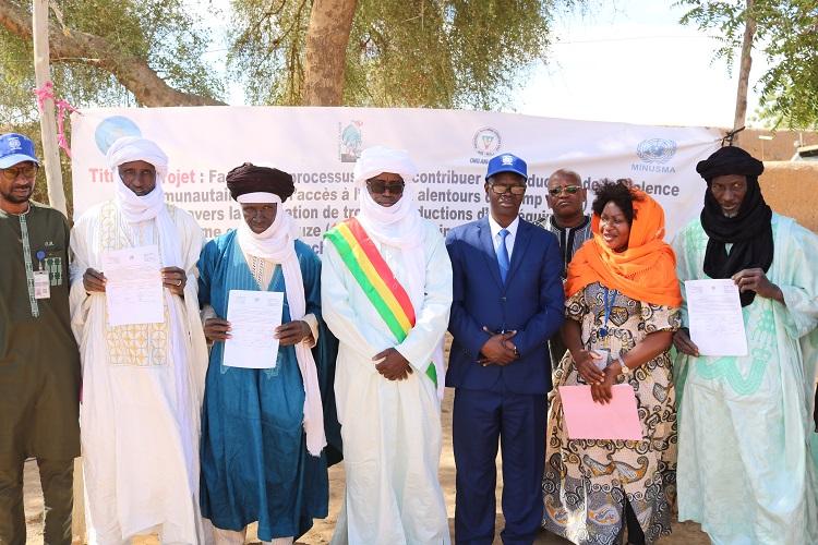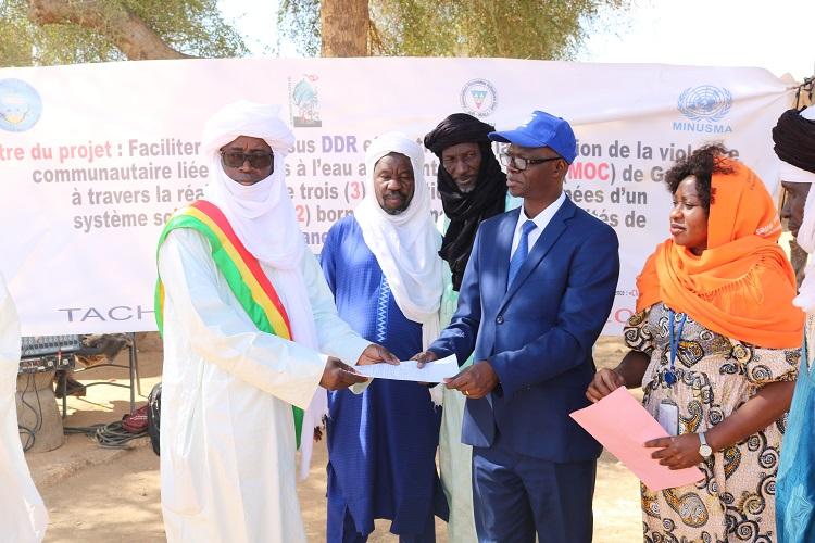 Pour renforcer la résilience communautaire, la MINUSMA a investi plus de 110 millions de Francs CFA pour la construction de forages solaires dans les villages d'Arhabou, de Tacharane et de Tin-Gahanane, dans la région de Gao. Les habitants de ces localités ont inauguré leurs ouvrages le 19 décembre 2022 à Tacharane, à une vingtaine de kilomètres de Gao.