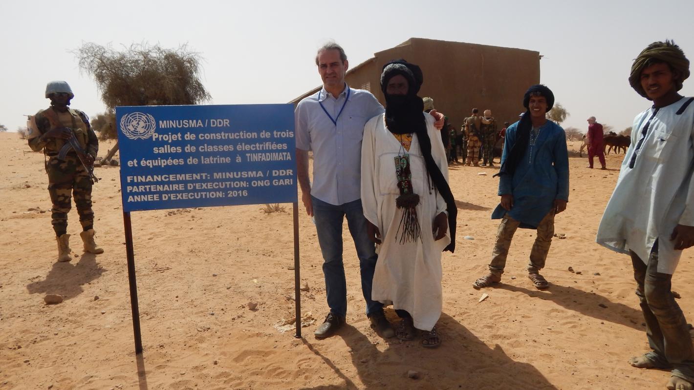 M. Thomas Kontogeorgos, chef en charge du Désarmement, Démobilisation et réintégration (DDR) au Département des Opérations de Maintien de la paix (DOMP) au siège des Nations Unies à New York, vient d’effectuer, le 8 mars 2017 une visite de terrain à Tinfadimata, dans la commune de Tindermene, région de Ménaka. Objectif : évaluer les progrès des trois projets de réduction de violence communautaire (CVR) en cours et leur impact sur la communauté locale.